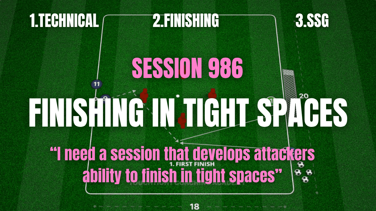 Session 986: Finishing in Tight Spaces focuses on developing quick combinations, intelligent movement, and clinical execution in crowded attacking areas. Players are challenged to think faster, move smarter, and finish with precision in realistic, high-pressure situations.